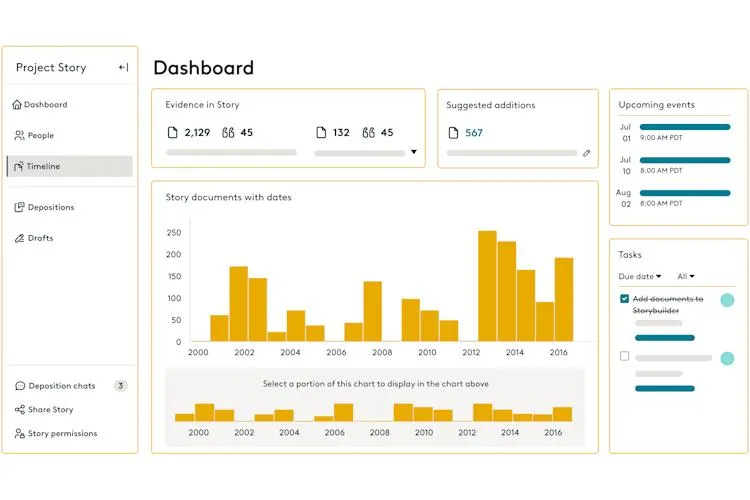 Everlaw Storybuilder is a collaborative platform for legal teams to craft case narratives, organize timelines, and prepare for depositions and trial. It integrates document review, deposition transcripts, and key testimony into a secure workspace, streamlining litigation workflows and enhancing strategic storytelling.
