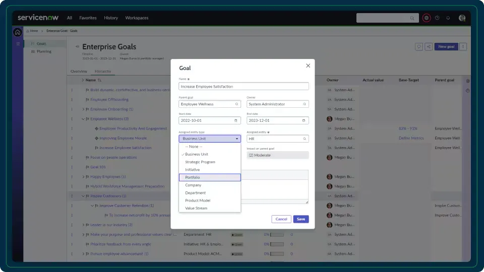 - Connect daily work to executive priorities through cascading goals