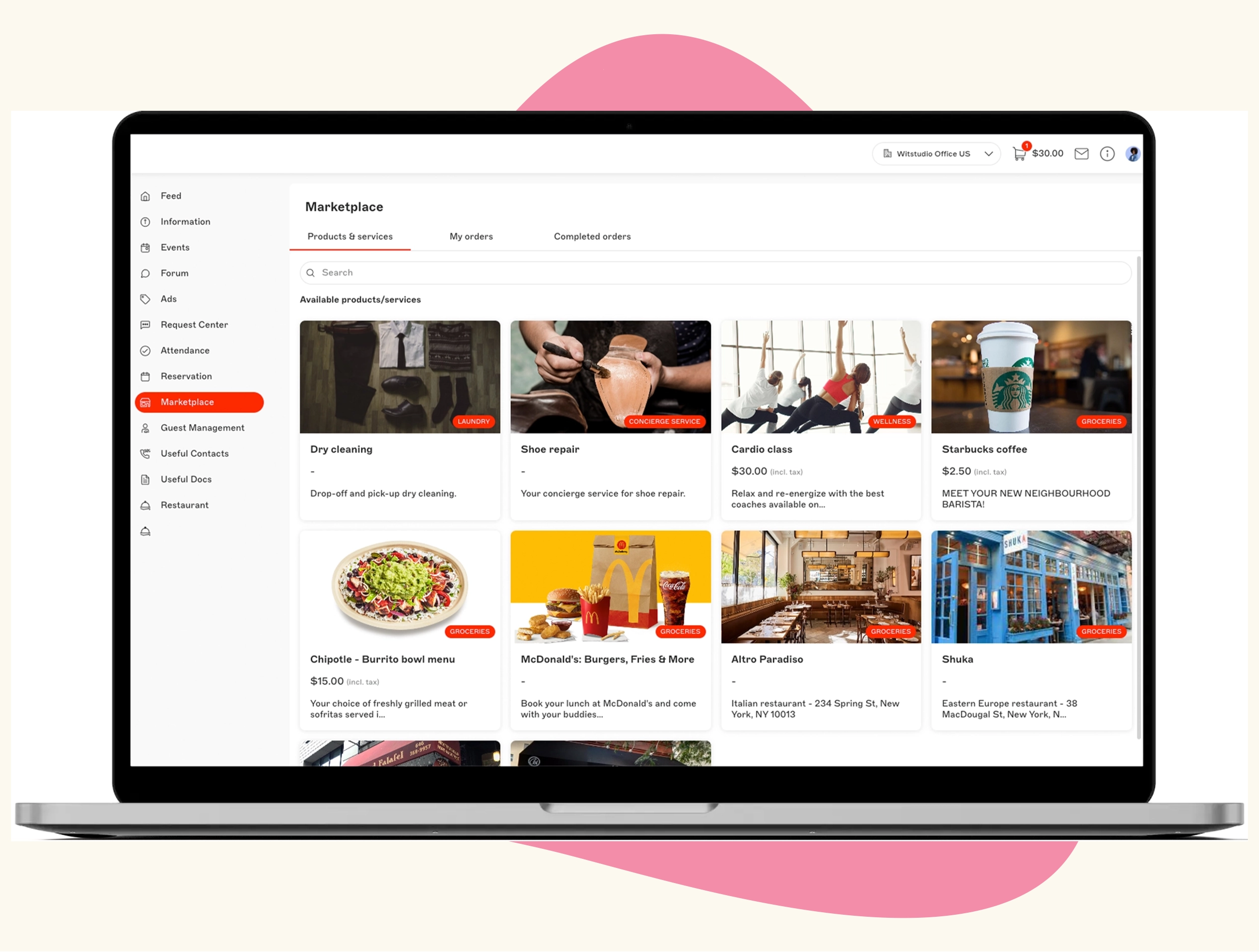 - Process payments for booked resources such as meeting rooms, desks, or fitness sessions.