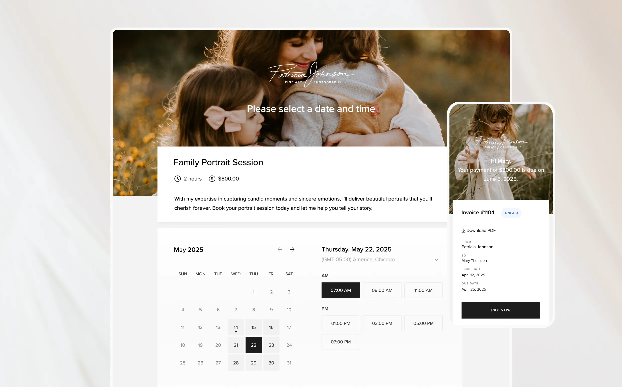The all-in-one CRM designed to manage bookings, take payments, and grow your photography business.