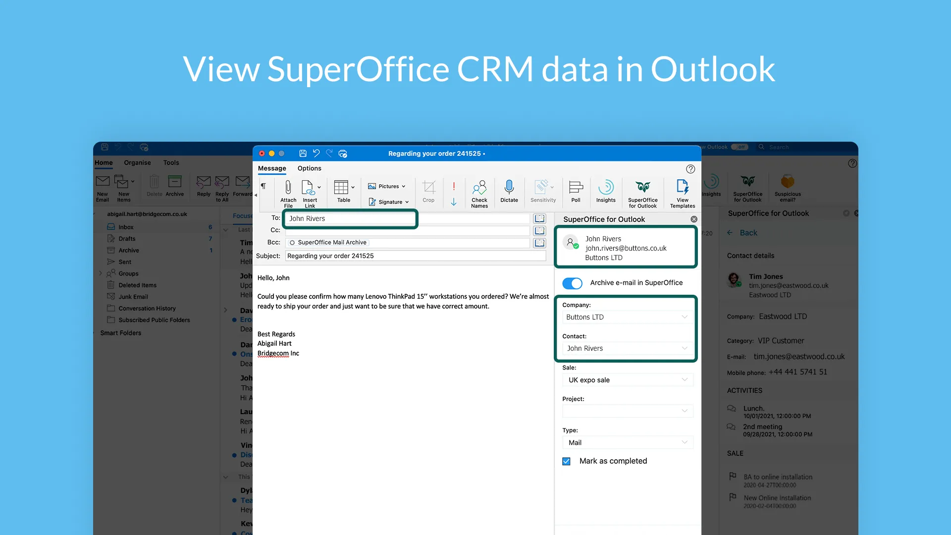 Stay seamlessly synchronized with SuperOffice for Outlook.