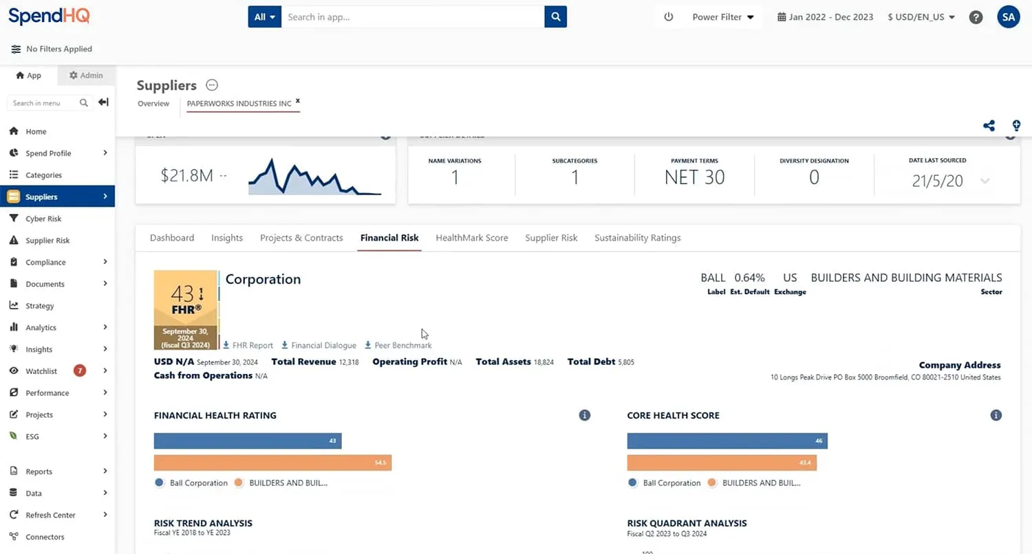 - Financial health monitoring: Deep financial health reports and predictive risk scoring (including private suppliers) to detect potential defaults or bankruptcies early.