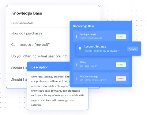- Customizable knowledge base for FAQs and guides