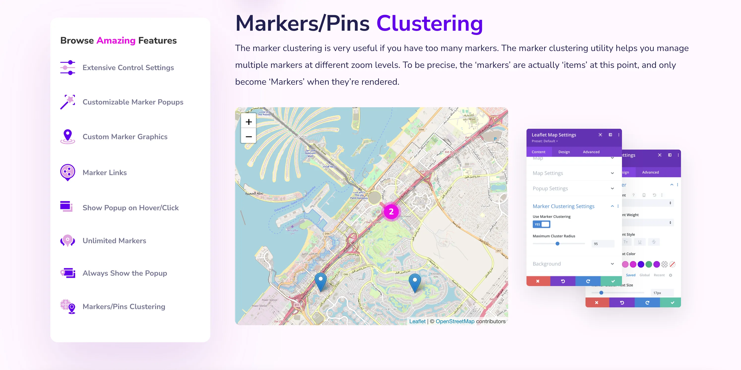 Divi Supreme Maps provides the power you need to create and manage customized maps quickly and easily. Take your websites to the next level with robust control over style and functionality. This completely free plugin integrates smoothly with OpenStreetMap & Leaflet Maps (Google & Bing coming soon). With a simple interface and a great builder, you can design interactive maps that match your website’s style and exceed your customers’ expectations. Add fully responsive full-screen or fixed-width maps. Use unlimited markers/pins to showcase multiple locations, specific regions or provide store locators and directions.