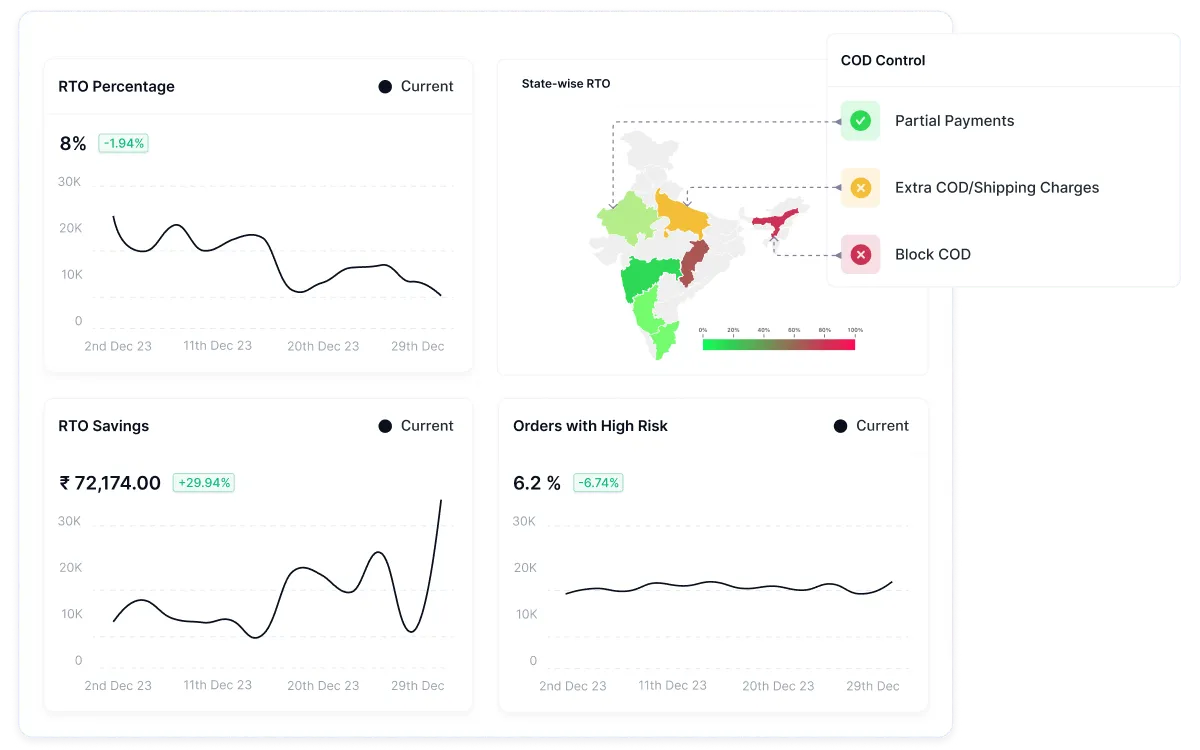 - Lowers costs associated with RTO and COD fraud