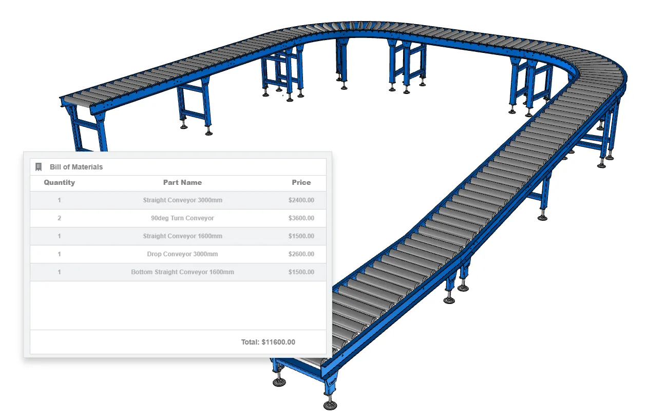 Configure 3D products with intelligent drag and drop products, produce real-time quotes, and securely share configured products with engineering design teams to speed up production.