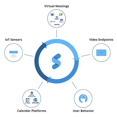 - Sensor & Calendar Integration: Leverages data from sensors, user behavior, and calendar systems to streamline meeting workflows.