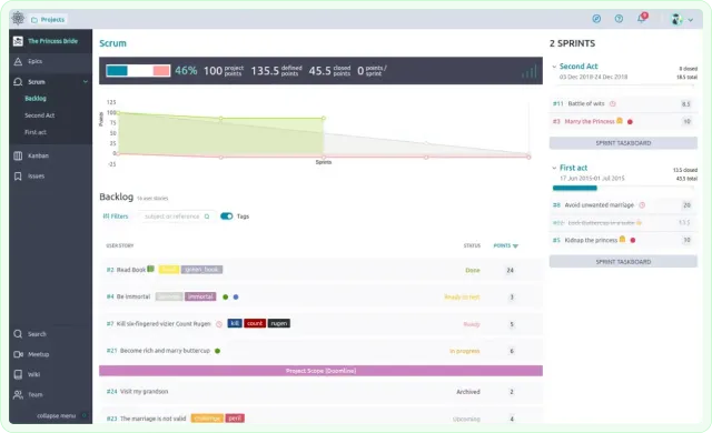 Taiga is an open-source agile project management platform designed for cross-functional teams. It supports both Scrum and Kanban methodologies, offering a visually intuitive and customizable interface that simplifies complex workflows. Taiga is ideal for startups, SMEs, and larger organizations seeking a flexible, collaborative environment.