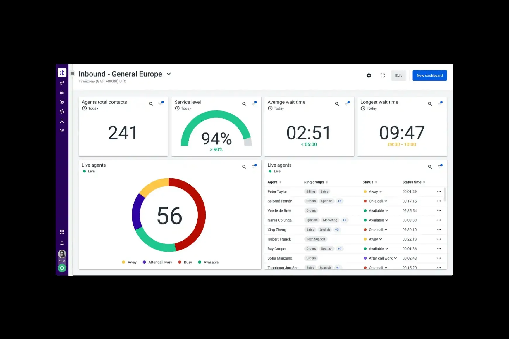 - Real-Time Dashboards: Gain immediate insights into contact center performance with dynamic reporting tools.
