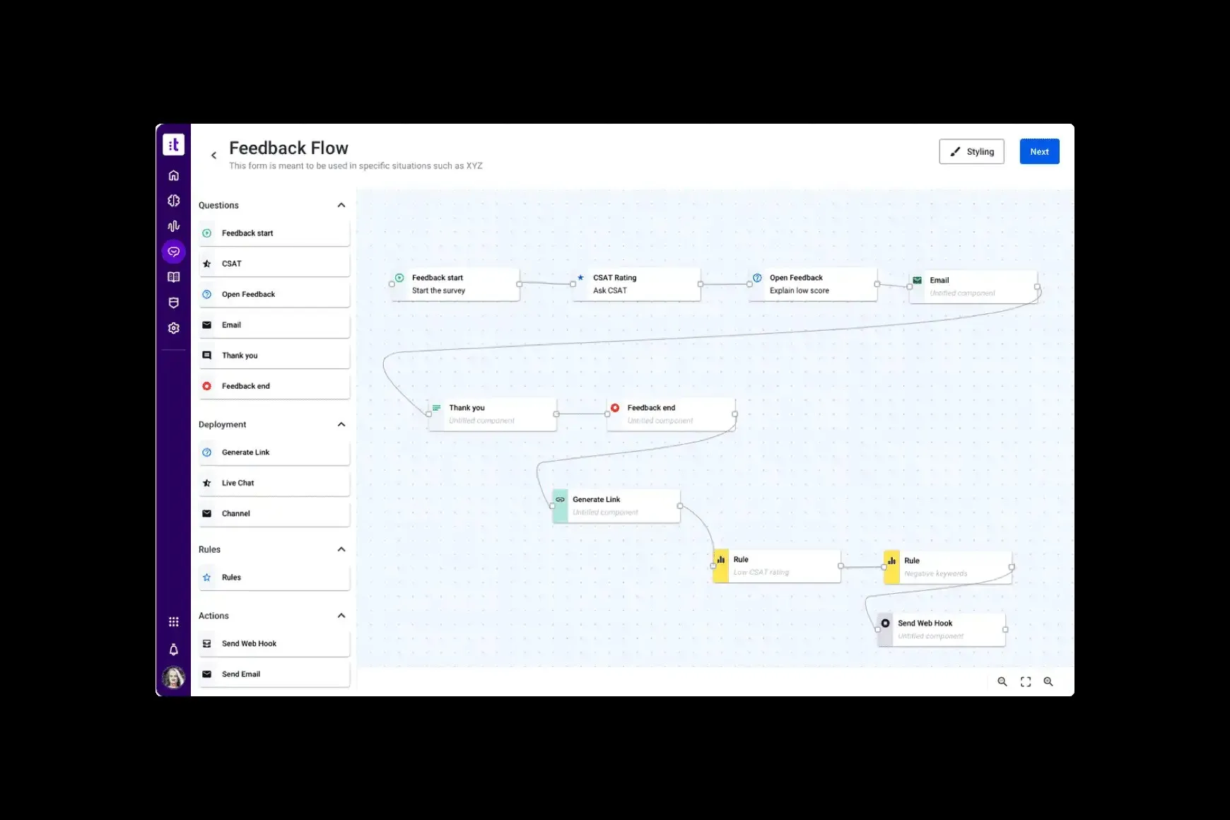 - Survey and Feedback Analytics: Deploy quick surveys across multiple channels to gather and analyze customer feedback effectively.