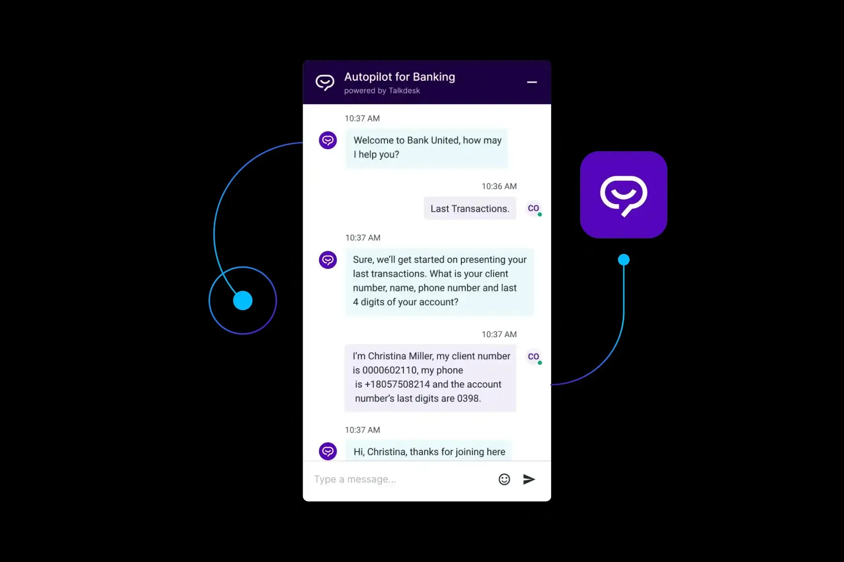 - Unified Client View: Offers relevant information across texts, calls, and banking data for agents.