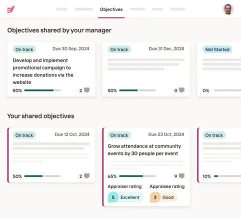 - Goal Setting & Tracking: Set SMART goals for employees, track progress, and align objectives with organizational targets via an intuitive dashboard.