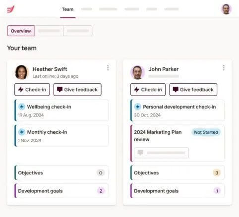 The software allows for the setting of SMART goals and objectives for every employee, with an easy-to-use dashboard for tracking progress and ensuring alignment with wider business and team objectives. It also integrates recognition features, flagging top performers and encouraging peer praise. A key capability is the gathering of 360-degree feedback, providing a fair and rounded view of team members' performance by consolidating feedback from 1:1s and check-ins. Automated reporting capabilities free up HR time by generating performance review analytics to inform data-driven decisions and streamline workflows.