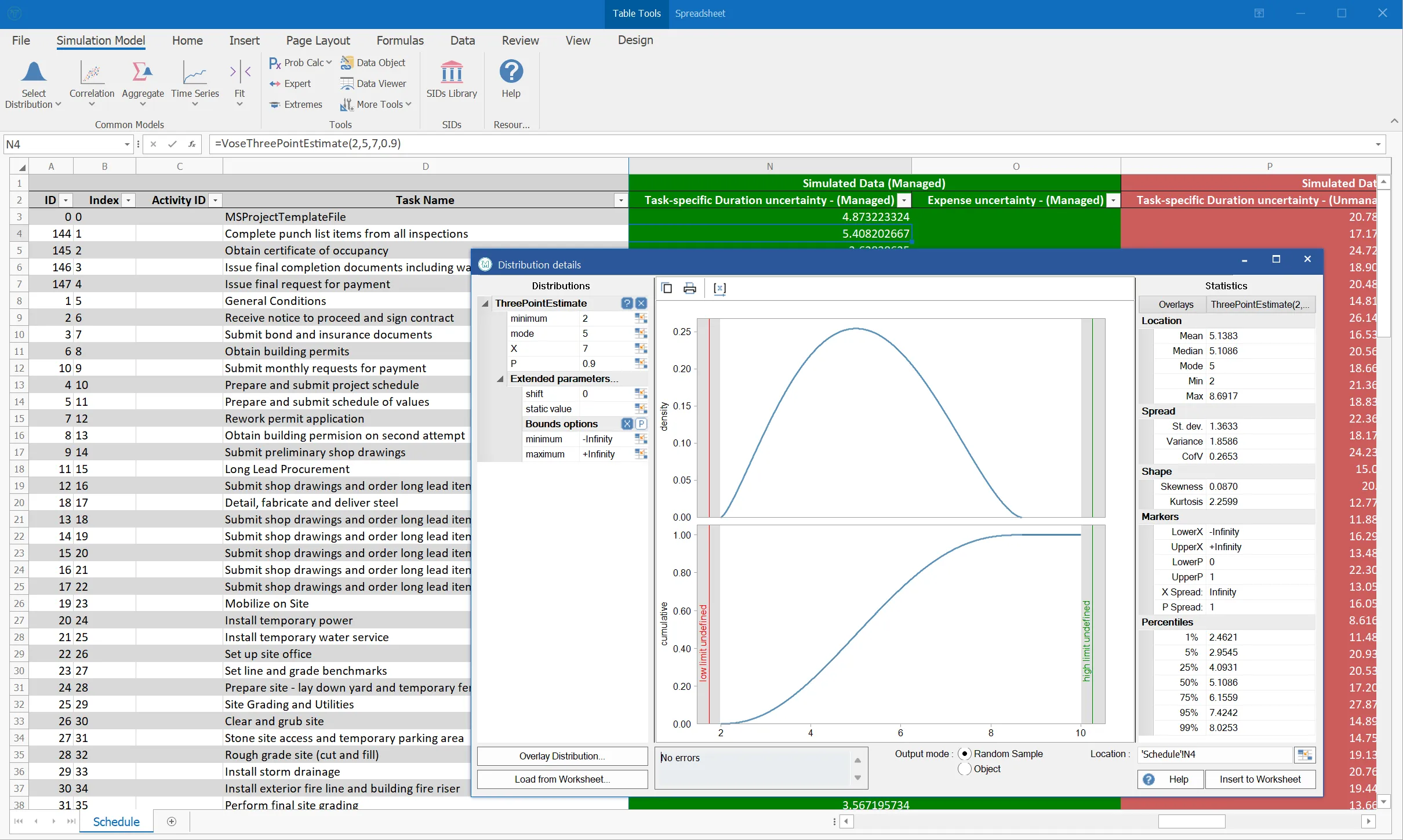 Tamara now offers a powerful feature that greatly expands its modelling and analytical capabilities – integrated spreadsheets, fully equipped with advanced risk modelling tools. This means almost unlimited freedom to describe the uncertainty around task durations and costs, the frequency and magnitude of risks and any inter-dependencies that can be of importance for a particular analysis. All this can now be modeled in a familiar, user-friendly, and powerful spreadsheet environment, enriched by a full set of risk analysis tools.