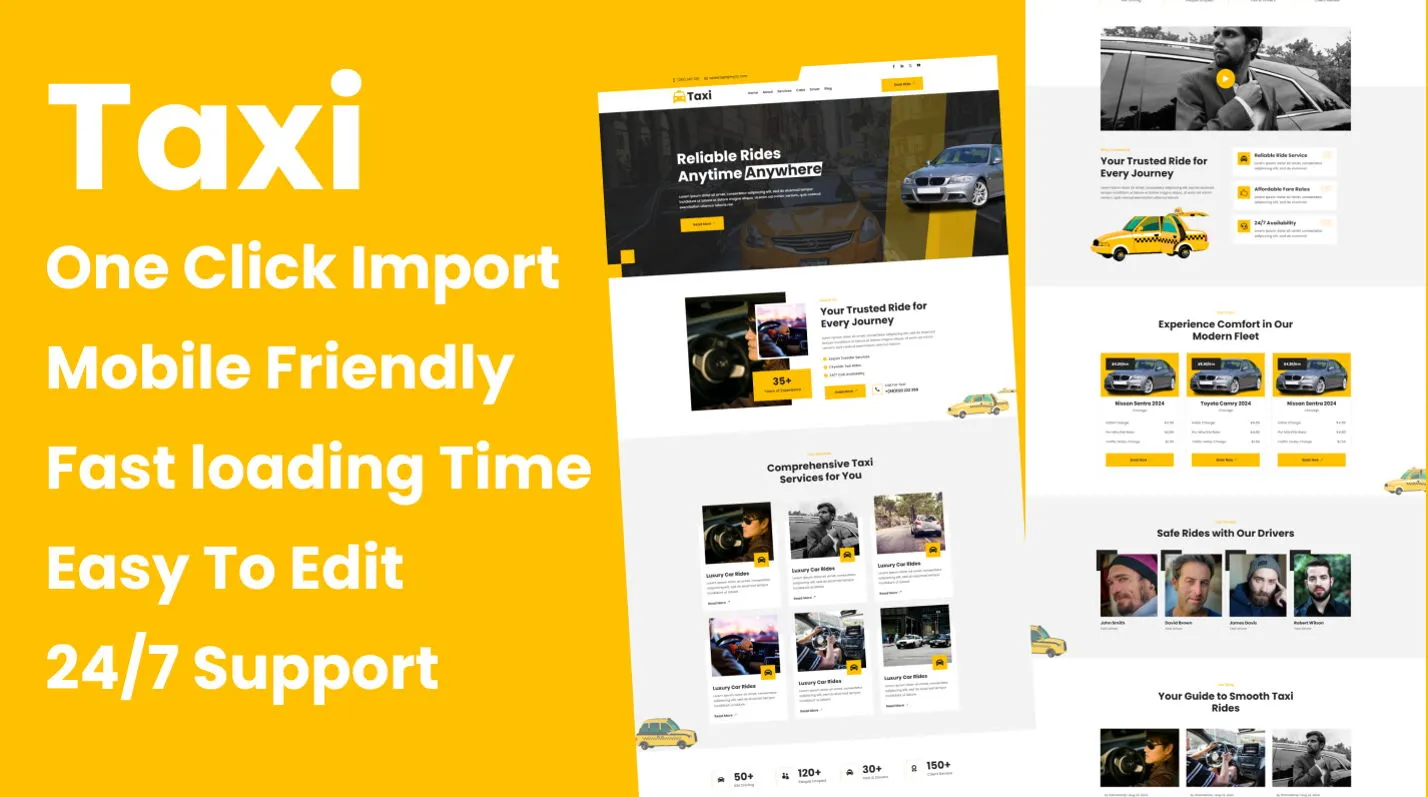 It contains everything that is required for a Taxi Cab Services, cab, car booking, car dealer, car rental, cars, driver, mechanic, private car hire, taxi booking services, taxi company, taxi ordering, taxi services, transport, travel, vehicles , This is the ideal solution for the website of Taxi Cab Services.