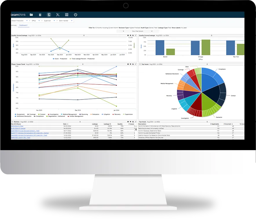 TeamThink is a SaaS-based insurance audit software that helps carriers optimize claims and underwriting quality. It automates audits, tracks performance, identifies leakage, and delivers actionable insights to improve financial outcomes and streamline quality assurance processes.