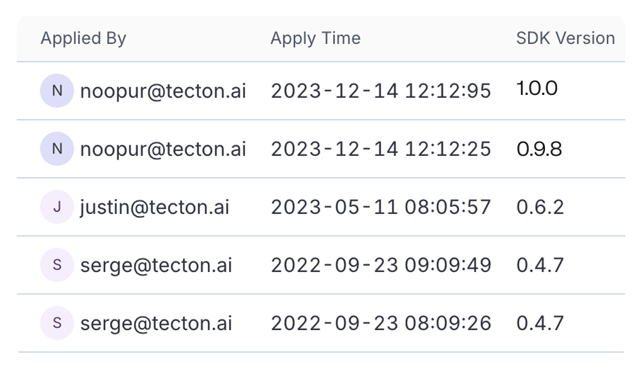 tecton applyto provision and optimize pipelines with minimal engineering effort. - Built-In Version Control: Track changes, manage versions, and reproduce configurations for auditability and reliability.