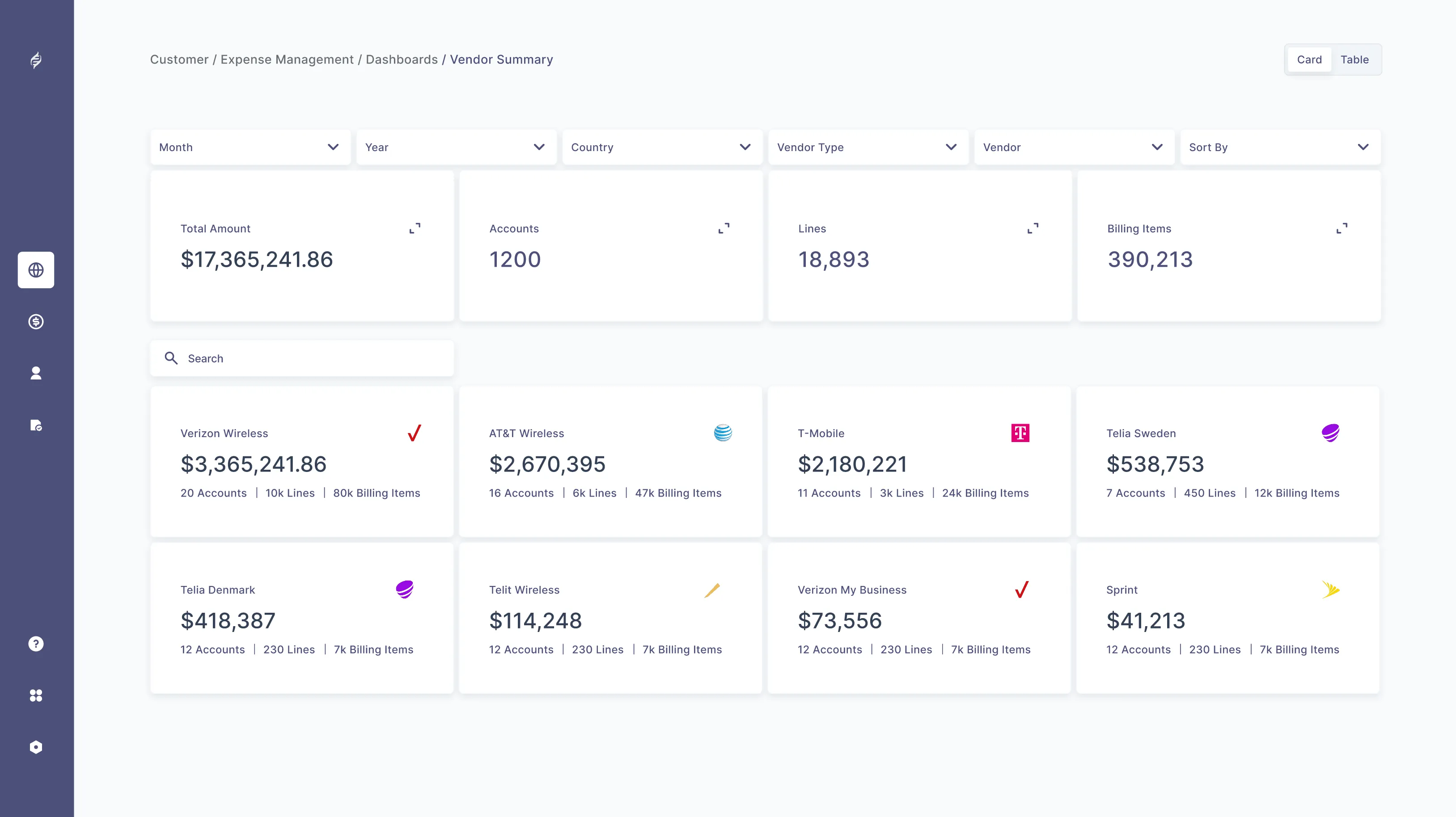- Analyze telecom spend across carriers, regions, and service types.