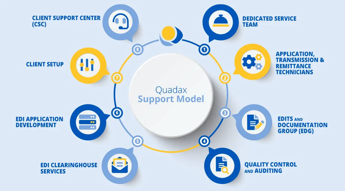 While we offer an industry-leading RCM solution, Quadax’s greatest strength is our experience around implementation and ongoing support given our extensive history of meeting a variety of billing, reimbursement and industry challenges. The client service team is supplemented with various dedicated resources within Quadax to react quickly to client needs, not only during implementation but throughout the engagement.