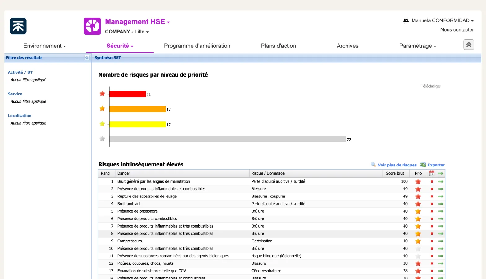 Tennaxia EHS Management module facilitates the capture and processing of operational data: from environmental analysis and/or workplace risk assessment, to management program management, and even work-at-risk management, at site or group level.
