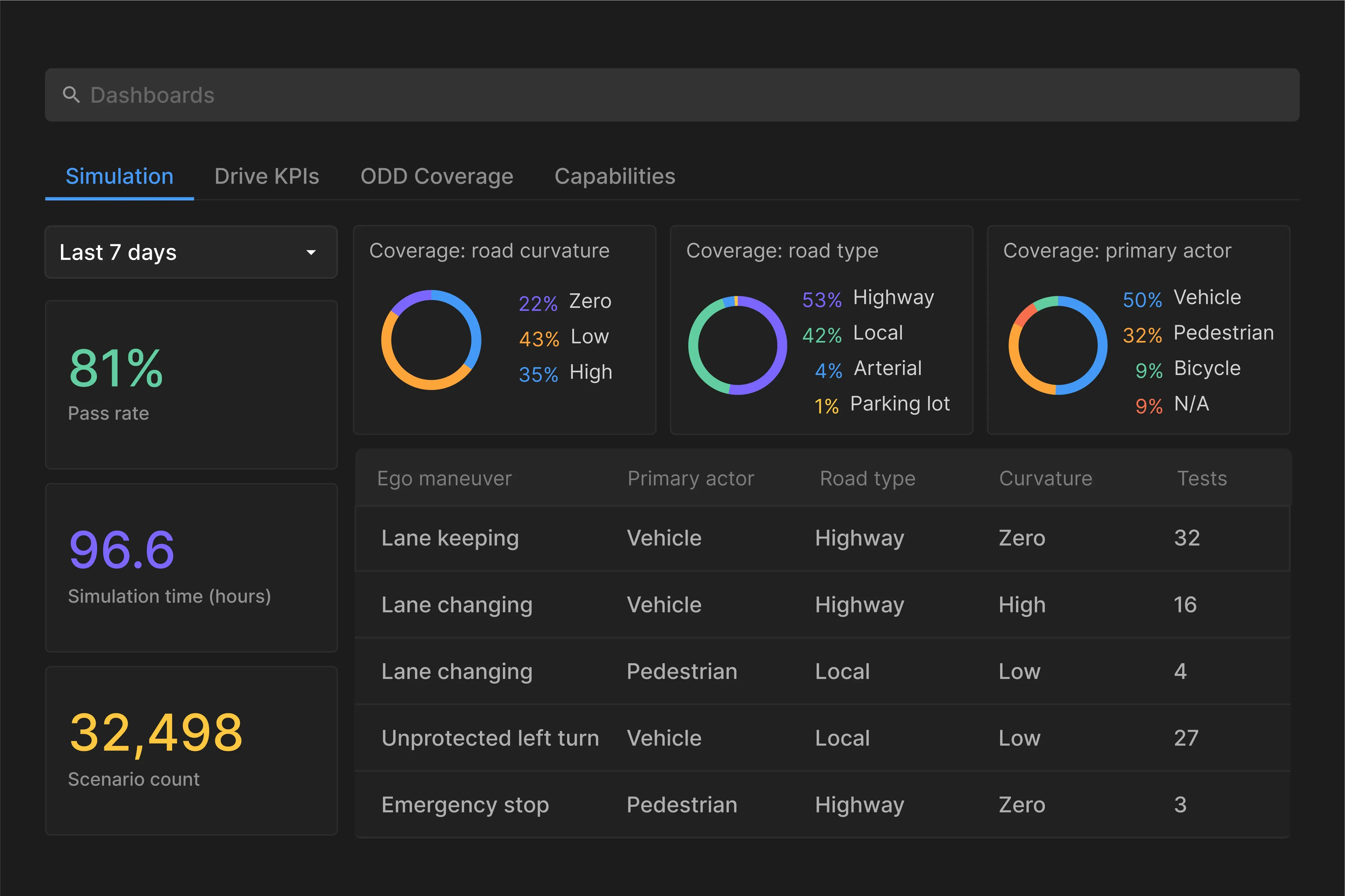 - Operational Design Domain (ODD) Coverage: Includes suites for highway, urban, and mixed environments to validate vehicle performance in diverse conditions, ensuring readiness for various real-world situations.