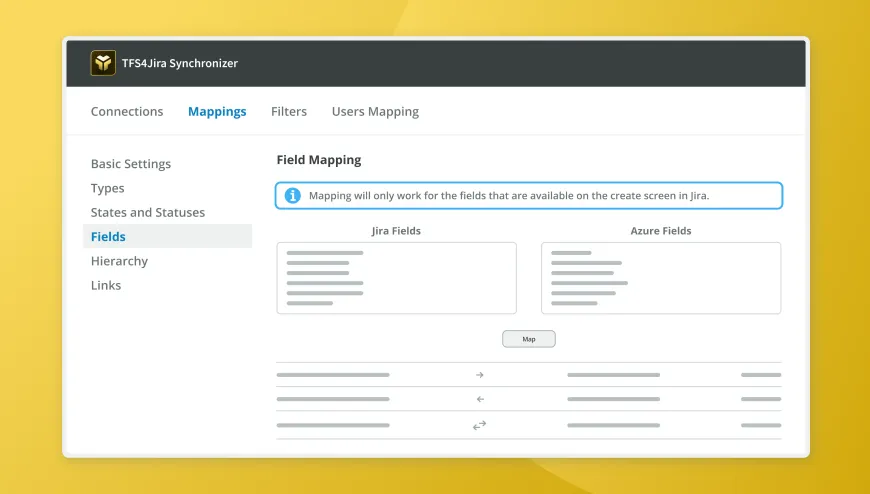 TFS4JIRA enables bi-directional data synchronization so your teams see changes reflected in both platforms in real time. Use custom mappings to synchronize by mapping fields, data values, filters, and hierarchies.