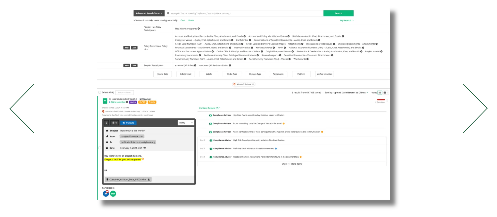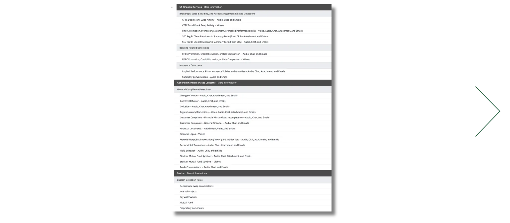 Automates detection, review, and remediation of compliance risks across unified communications using ML/AI-driven surveillance and archiving.