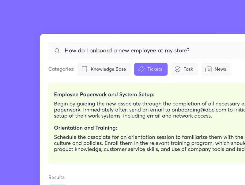 Experience a streamlined digital workplace with Retail AI tools from ThinkTime. Ask our AI Chatbot your questions and get quick, AI-generated answers along with helpful articles for further learning. Simple, efficient, and informative.