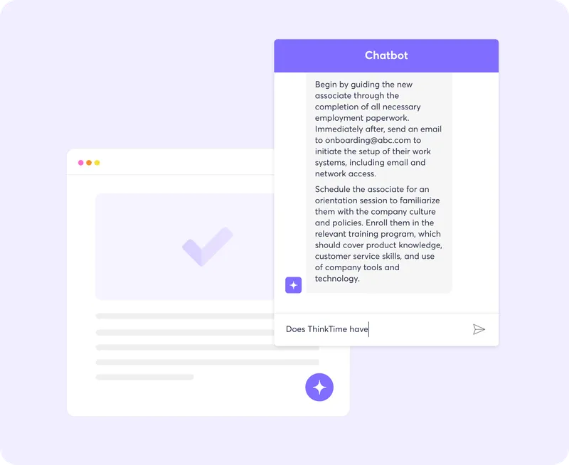 Transform How You Access Information: Simply converse with our AI Chatbot, and it will intelligently retrieve and interpret operational content from the ThinkTime Knowledge Base. Say goodbye to endless searching, and hello to instant answers.