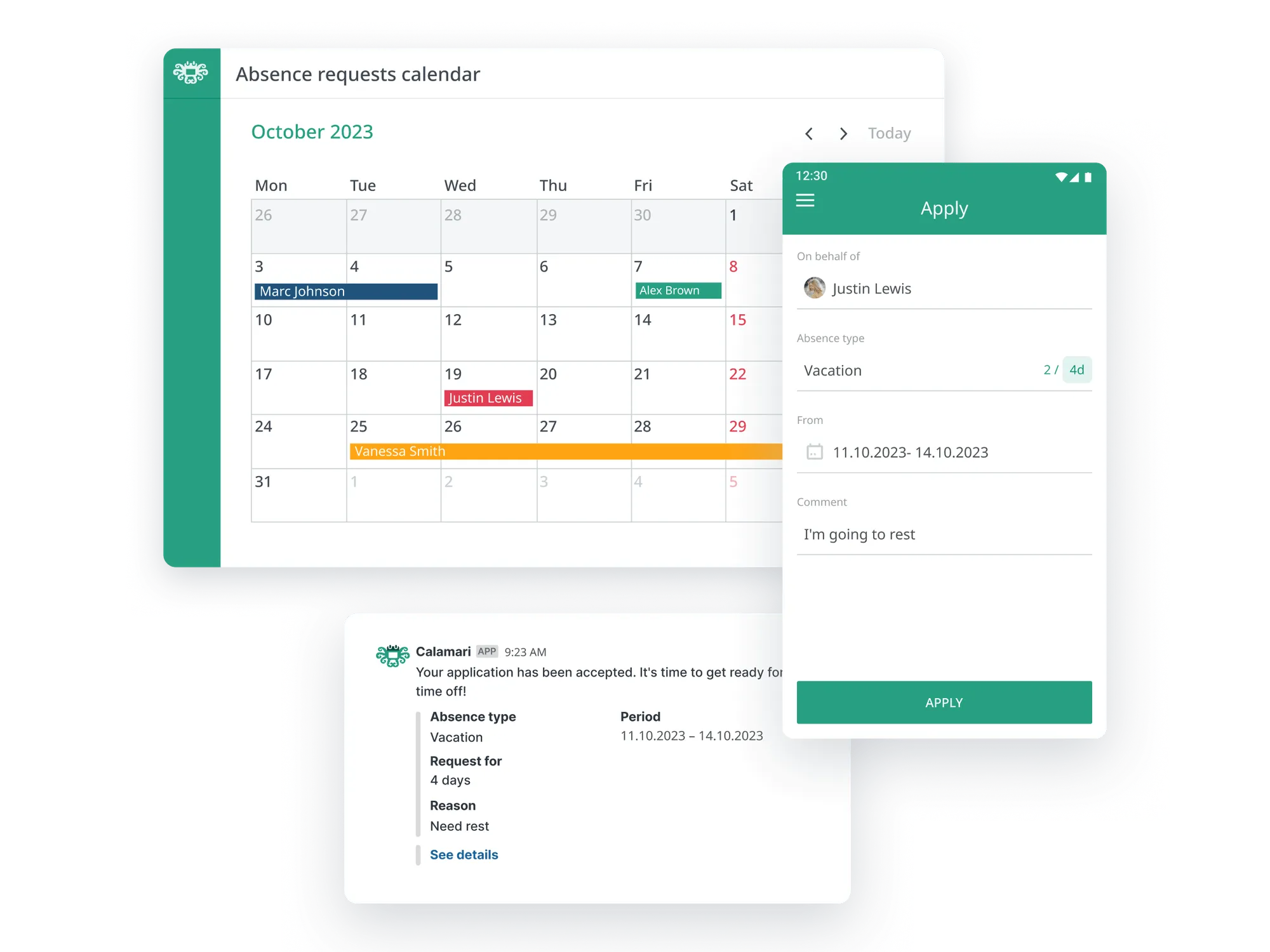 - Quick, mobile-friendly leave requests