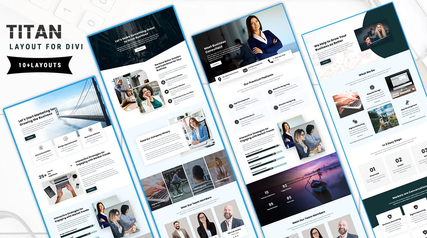 Titan is a premium Divi layout pack for building modern, responsive websites with unlimited usage and 1-year support.