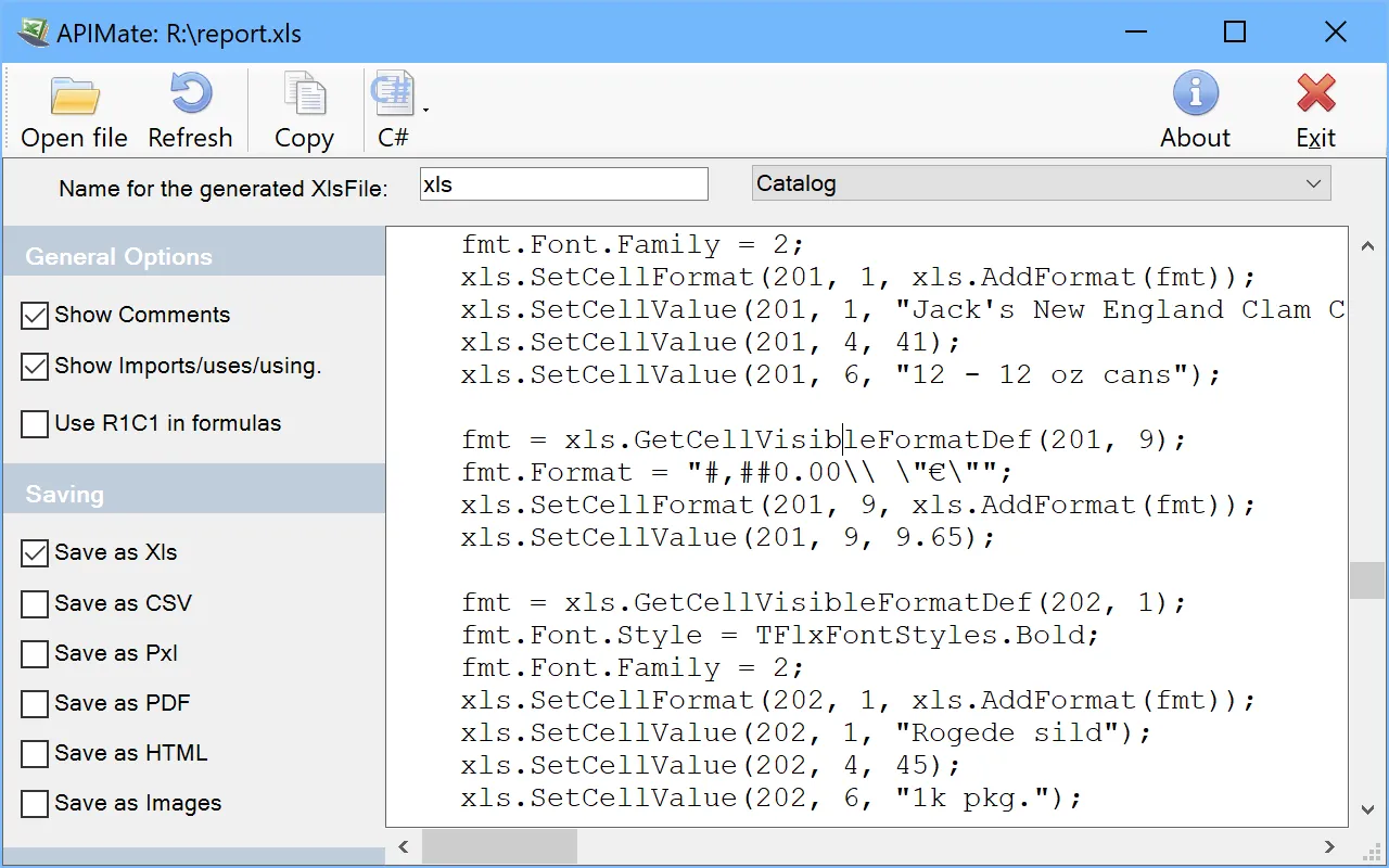 - ApiMate tool for automatically showing needed Delphi/C++ code for generating specific .XLS/.XLSX file cells with Flexcel