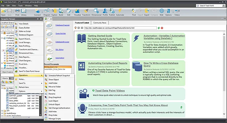 - Automation: Enables scheduling and automated execution of Toad Data Point automation scripts, streamlining workflows.
