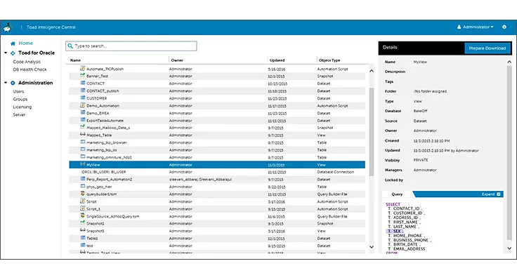 Enhance data collaboration and provisioning with Toad Intelligence Central's centralized repository.