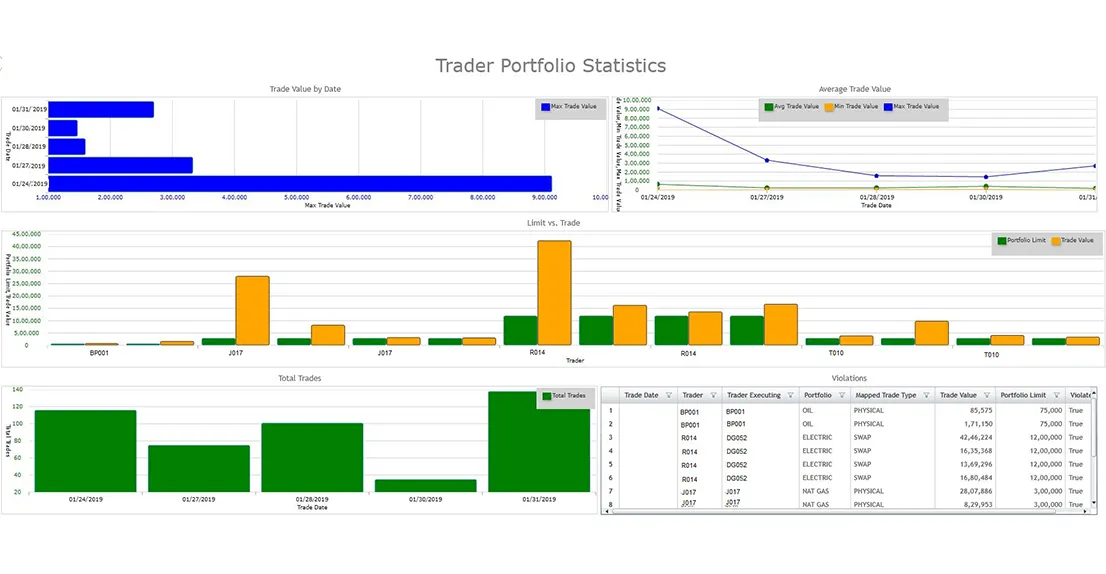 - Monitoring of volume, dollar value, term, duration and aggregate value limits against new and updated trades done during a day