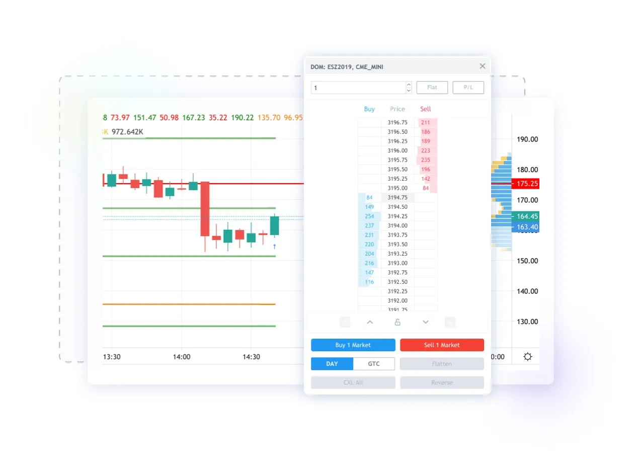 - **Price Ladder (Depth) Trading: **Visual price-ladder (market depth) display to observe bid/ask liquidity in real time and execute orders directly from the ladder view for fast reaction to microstructure moves.