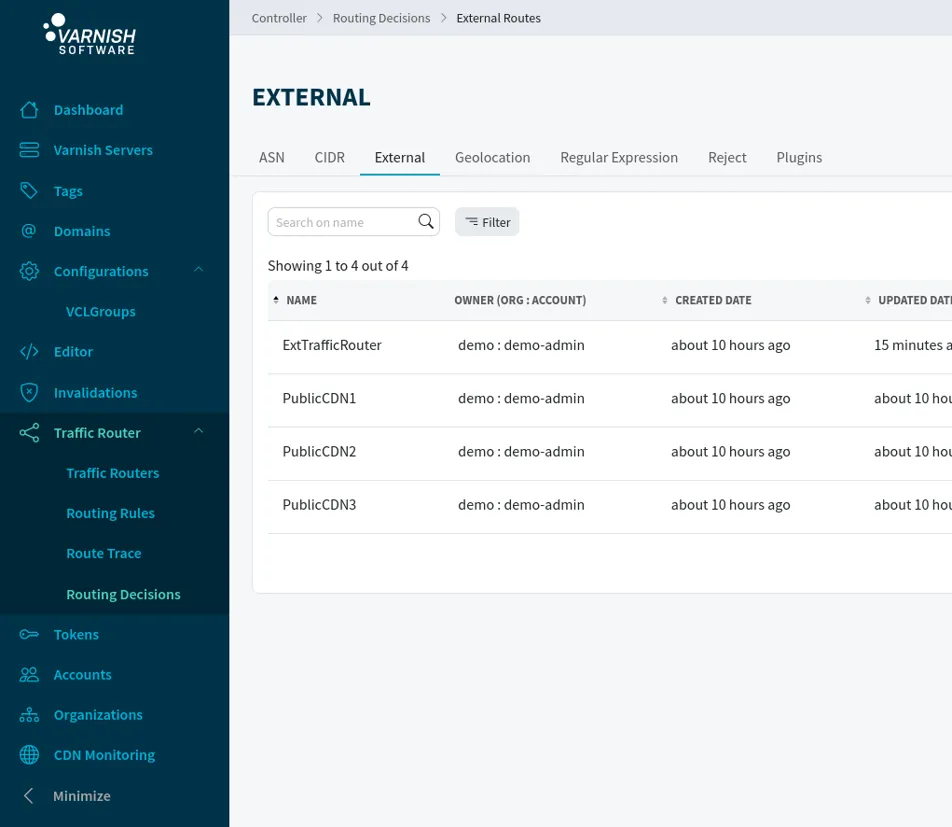 Traffic Router is an HTTP and DNS-based request router for Varnish Enterprise. It makes sure that users and upstream CDNs fetch content from the optimal Varnish cache, for excellent user experiences at scale. Traffic Router is tightly integrated with Varnish Controller and helps to simplify web service operations, maintain availability, guarantee QoS, and extend reach. The flexible rules engine directs client requests based on factors like location and utilization, and supports public CDN offload to balance traffic across the entire CDN mix.
