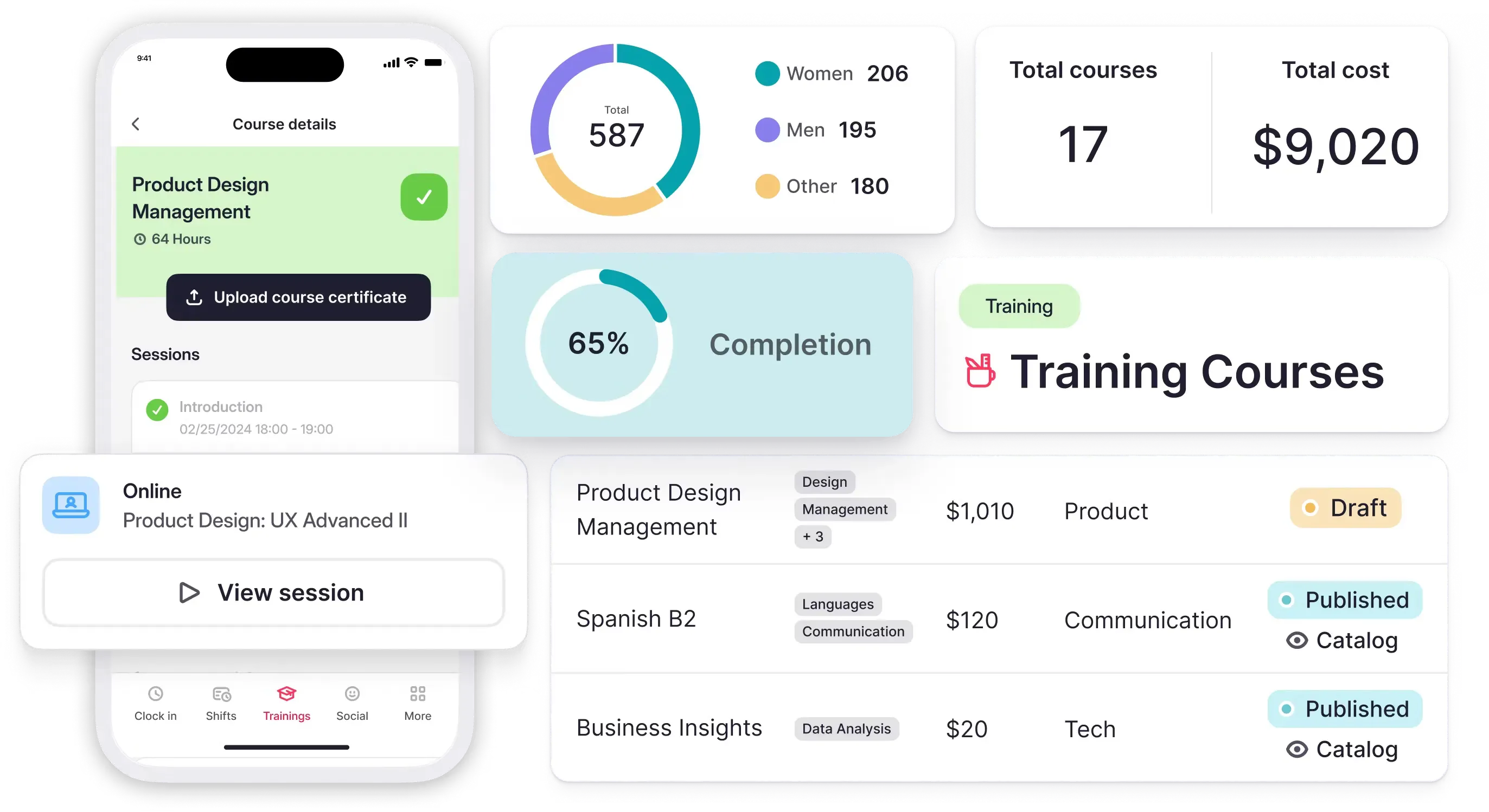 - Progress Monitoring: Analyze training outcomes with tools to track completion and effectiveness.