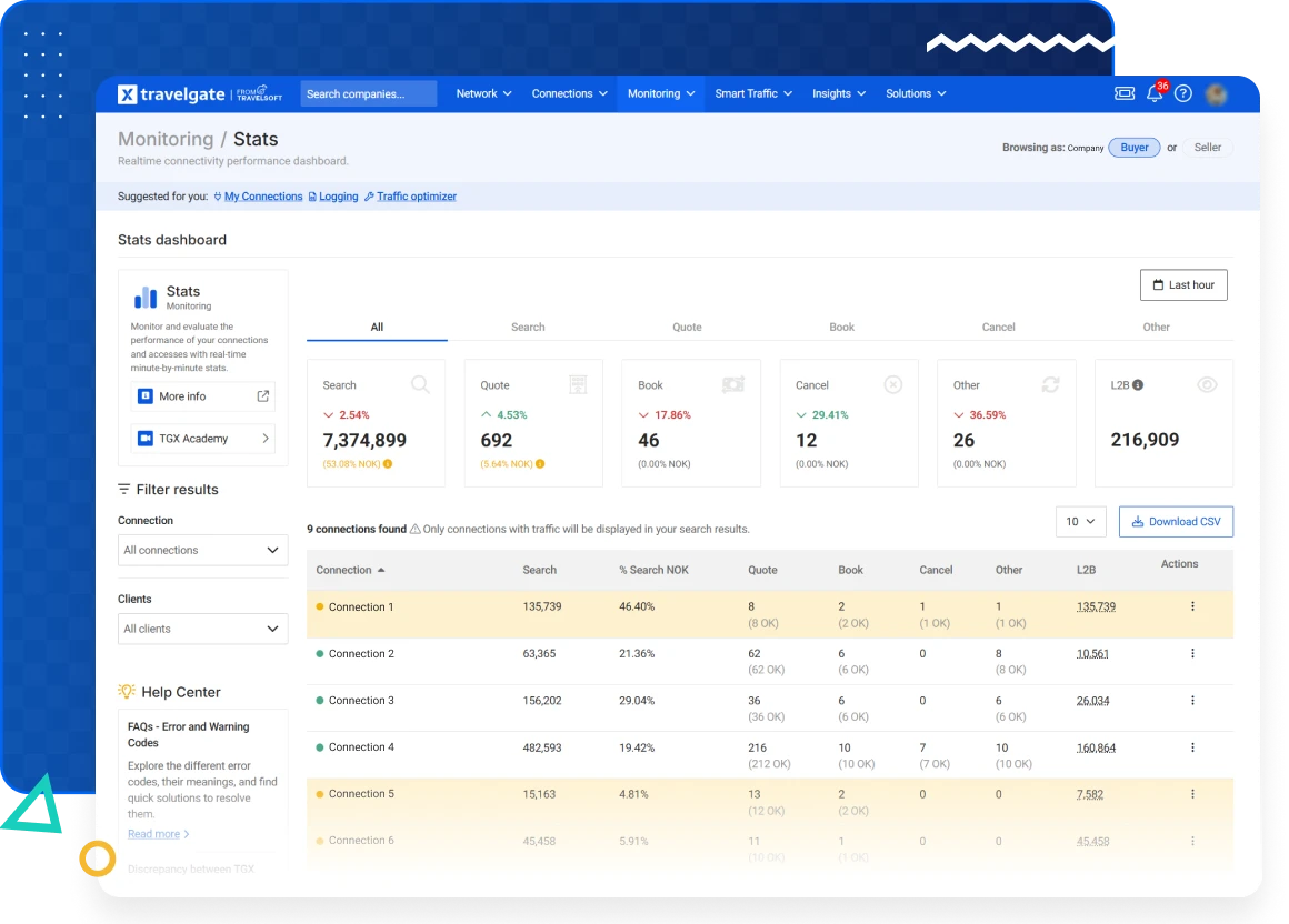 Join Travelgate Marketplace and instantly get access to a user-friendly platform to oversee and optimize all your connections—no technical expertise needed.