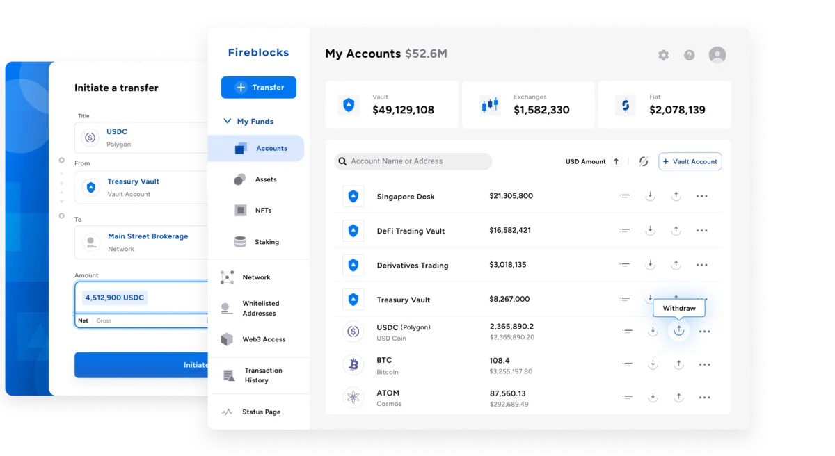Fireblocks provides an easy-to-use solution that enables you to secure your digital assets, manage day-to-day treasury operations, connect to exchanges, access DeFi, and interact with your trading counterparties.