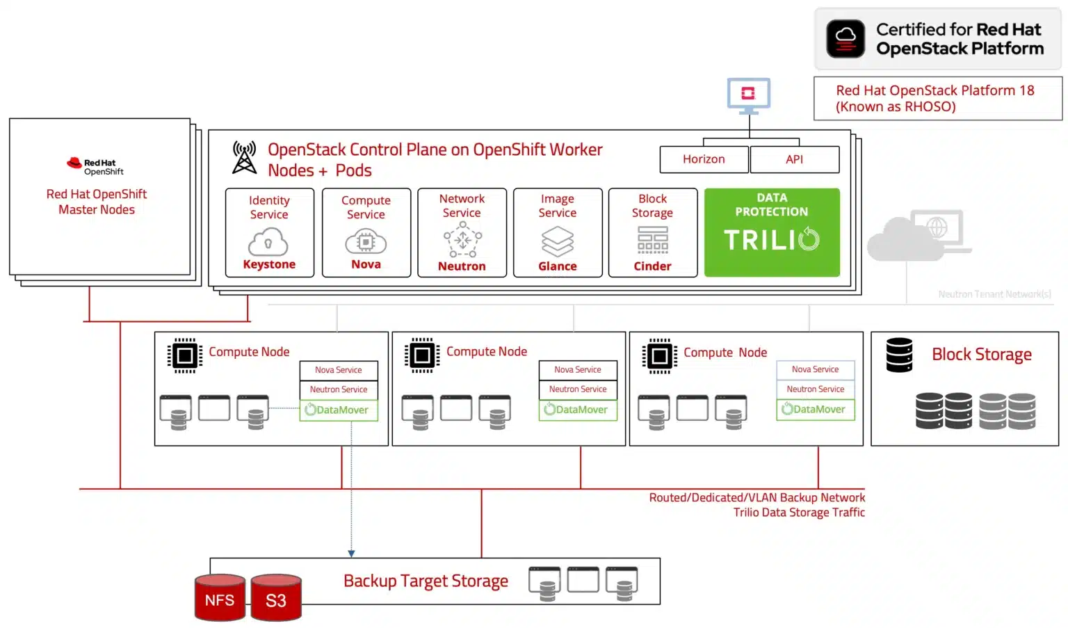 Trilio has been providing enterprise protection for Red Hat OpenStack Platform since RHOSP10. With RHOSP18 around the corner, trust the backup solution designed for OpenStack. With Trilio and Red Hat, you receive Enterprise class, backup-as-a-service whether you are a small business, telco operator or managed service provider.