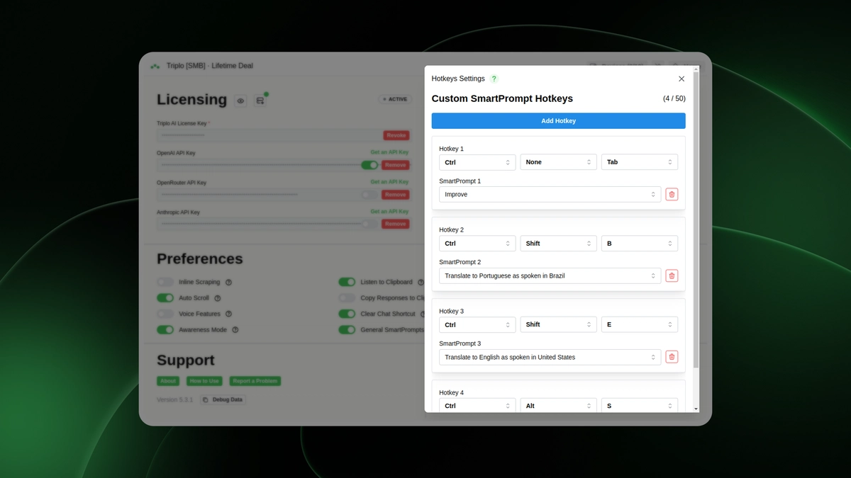 Triplo AI is a cross‑platform AI productivity tool designed to run inside any application on desktop and mobile devices. It provides real‑time AI assistance triggered by a simple hotkey, enabling users to generate content, rewrite text, translate, automate workflows, and extract information without switching apps. The platform supports extensive SmartPrompts, custom commands, knowledge bases, and web or video scraping. Users can run cloud‑based models or local LLMs for privacy and cost control. Triplo AI integrates with automation platforms, APIs, and workflows, offering a unified environment to streamline daily tasks.