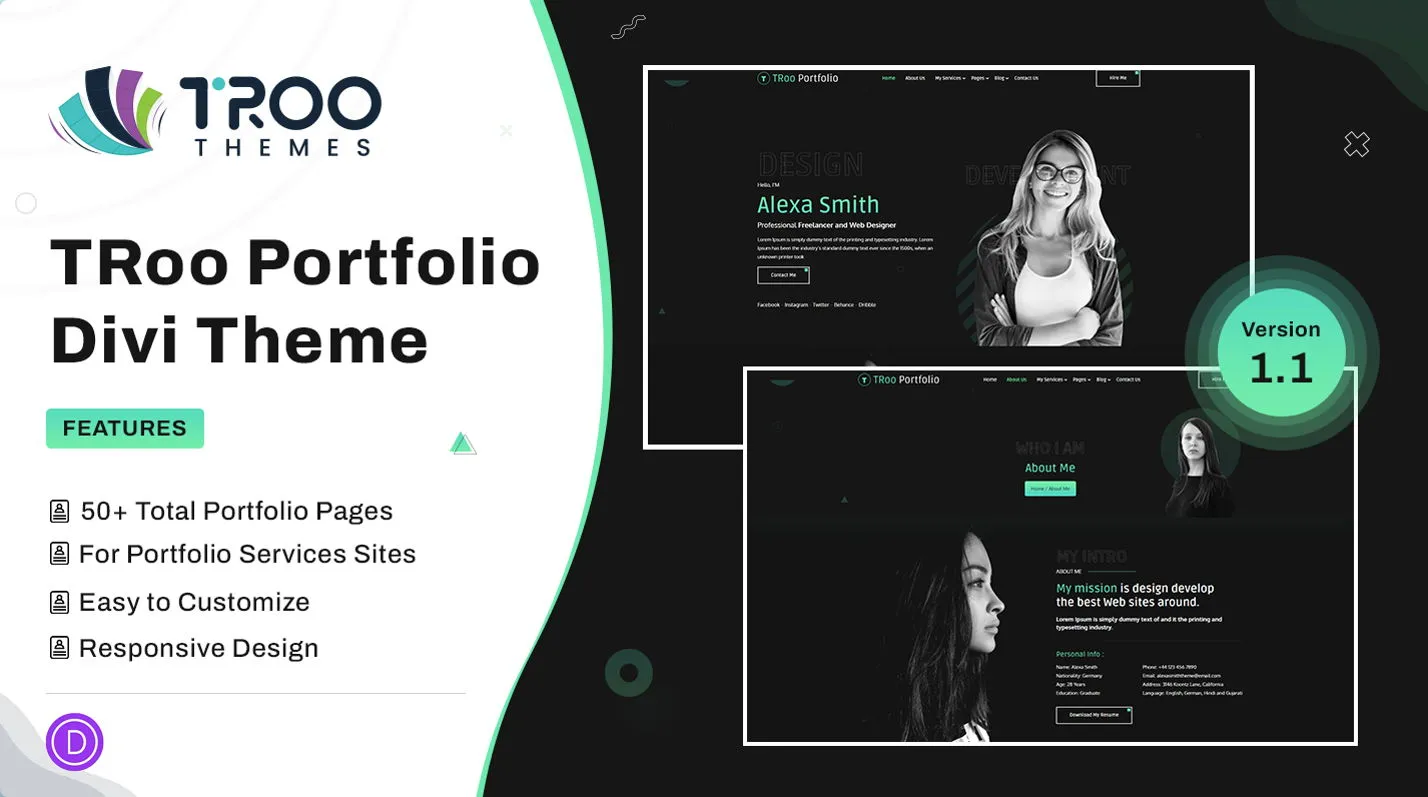 Are you looking to showcase your talents and projects in a sleek and professional manner? Look no further! TRoo Personal Portfolio is a stunning child theme designed specifically for Divi, the popular WordPress theme and visual page builder. With TRoo Personal Portfolio, you can easily create a captivating online portfolio to highlight your skills, accomplishments, and creative works. Whether you’re a freelancer, artist, designer, photographer, or any other professional seeking to impress potential clients or employers, this theme has got you covered.
