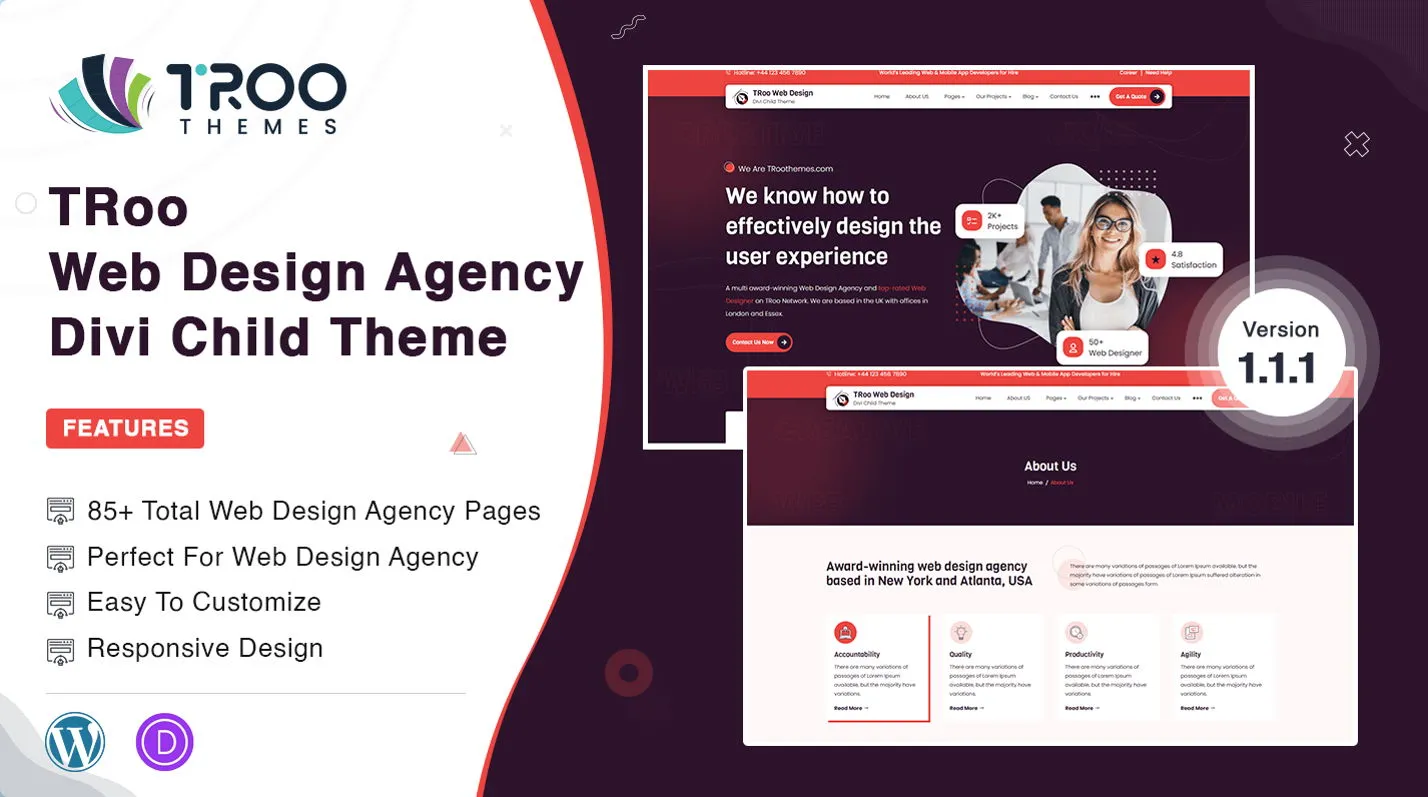 Introducing the Divi Child Theme for Web Design Agency – an innovative and visually stunning solution tailored specifically for web design agencies and professionals. Crafted with precision and creativity, this Divi Child Theme offers a seamless blend of functionality and aesthetics to elevate your agency’s online presence to new heights. This TRoo Web Design Agency Divi Child Theme has dozens of pages, including About Us, Services, Team, Testimonials, Team, Pricing, and many more! You will find what you’re looking for!
