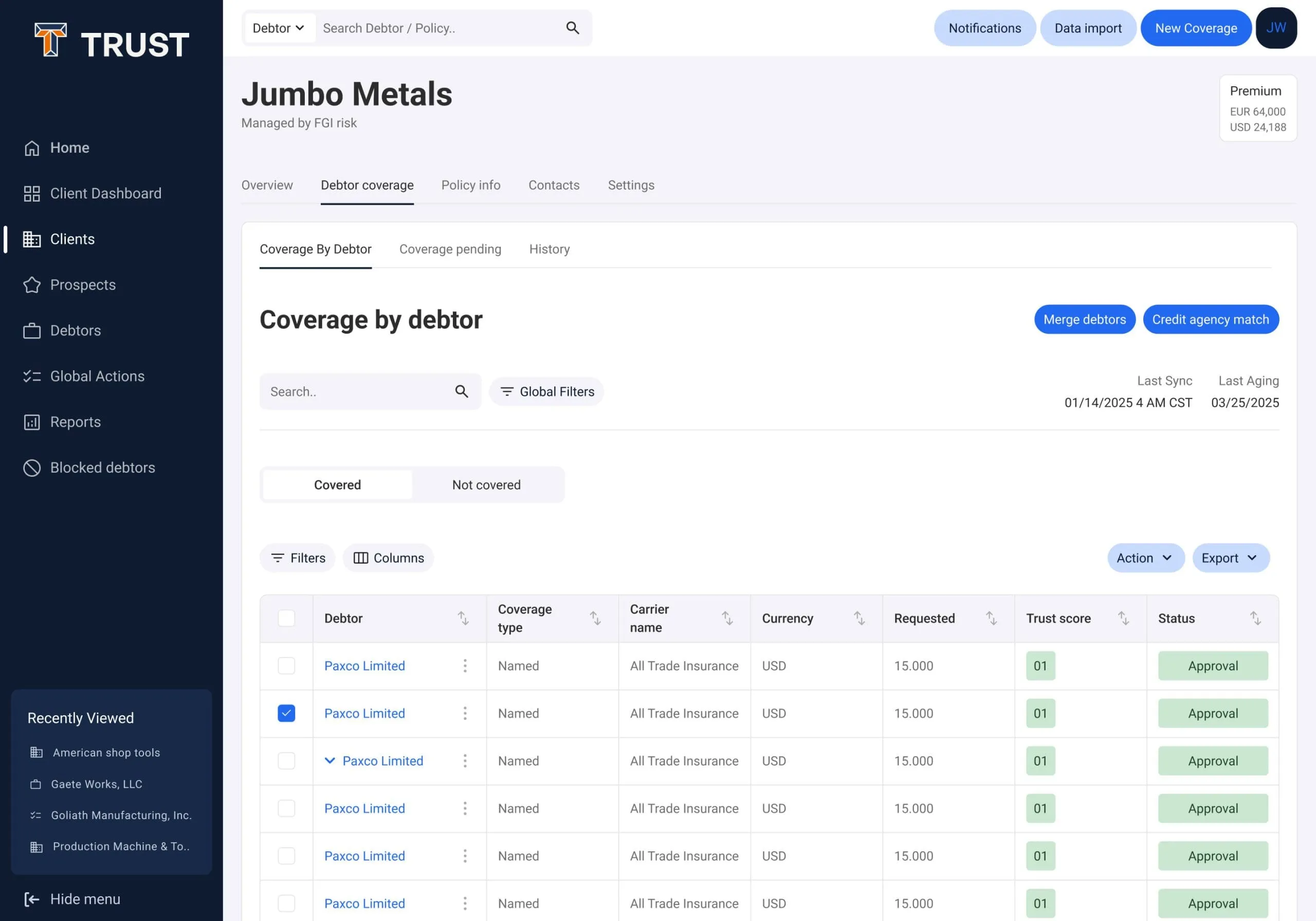 - We developed TRUST™ specifically to help corporations, brokers, and lenders manage credit insurance more efficiently.