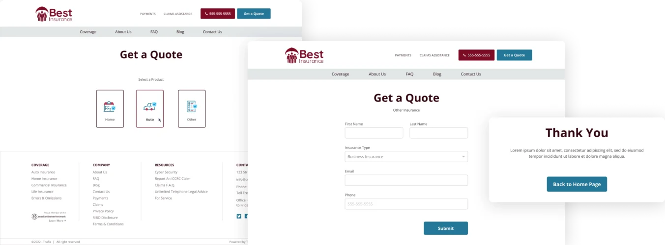 - **Optimized Insurance Forms: **Your brokerage can use our optimized forms built specifically for insurance leads to help brokers quote faster.