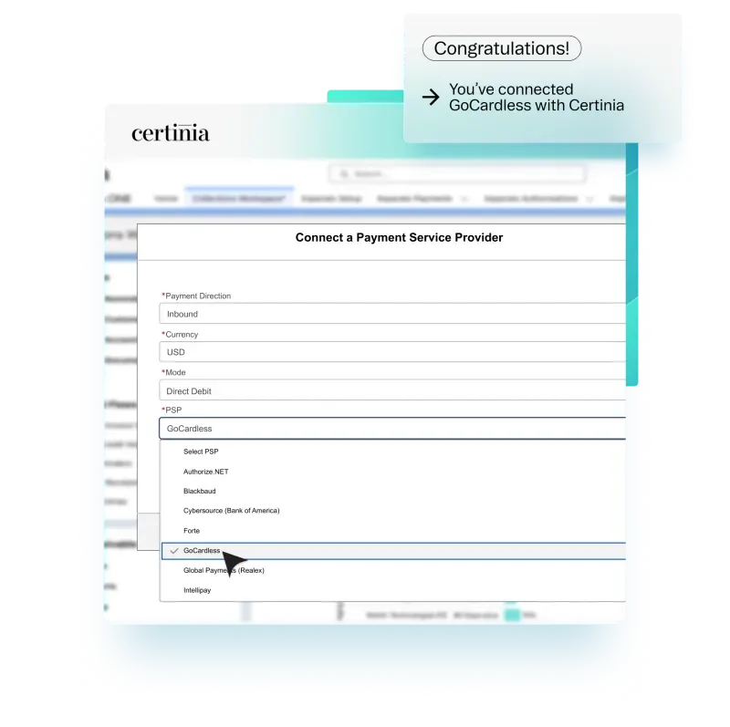 Connect your payment service providers (PSPs) with Certinia, and manage all accounts payable and accounts receivable processes in one place.