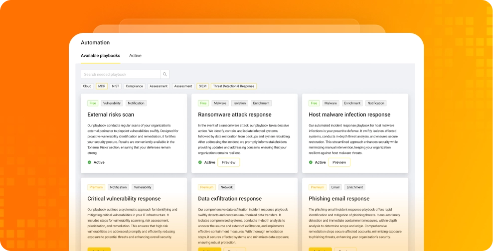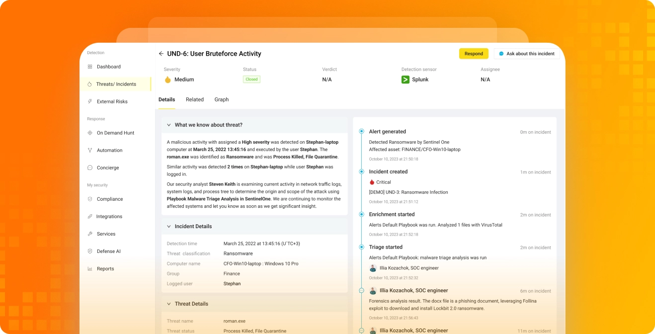 Unified, cloud-based platform for 24/7 managed detection, response, automation, and compliance across cloud, hybrid, and on-premise environments.