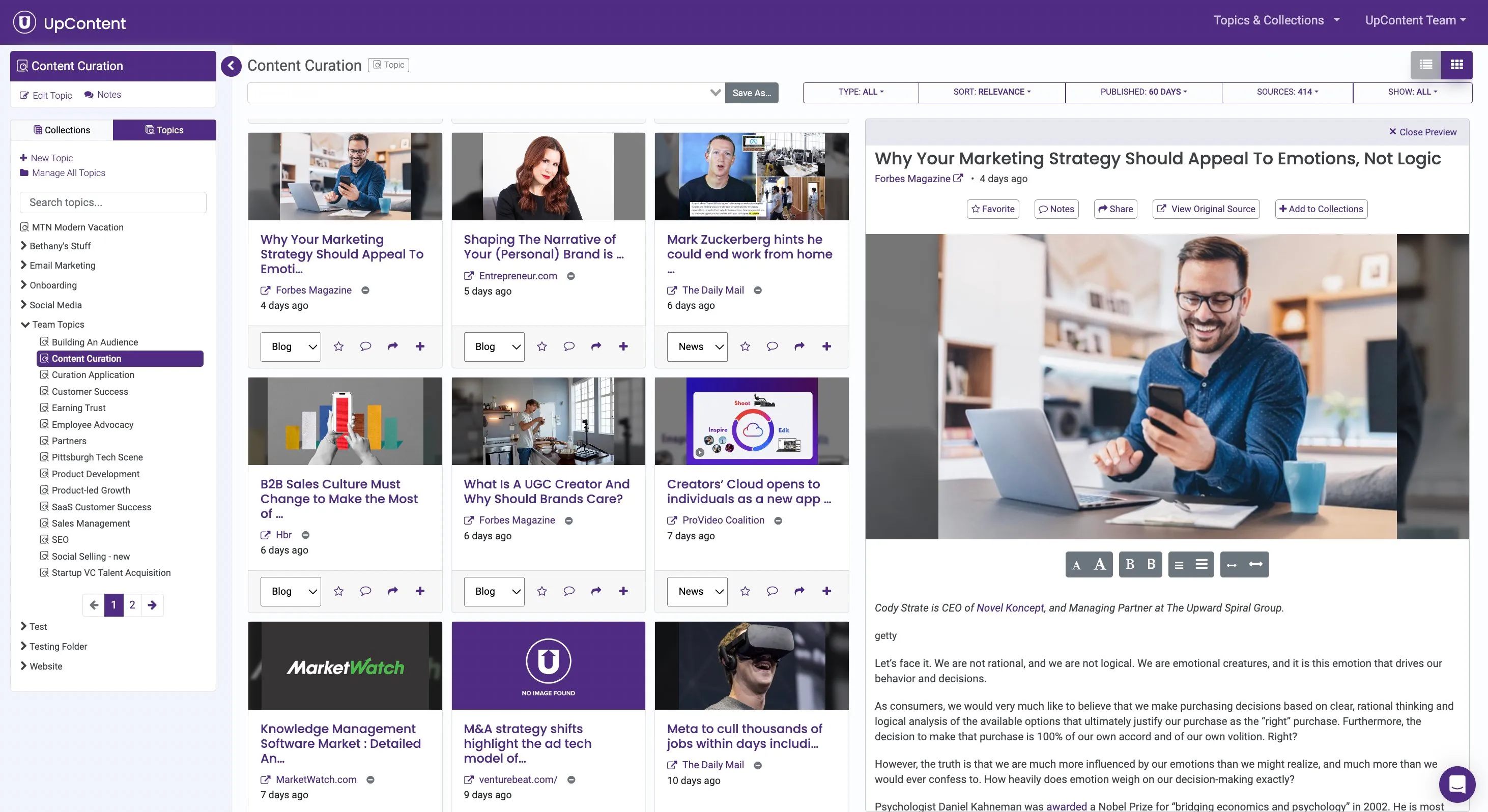 UpContent is a SaaS platform that streamlines the discovery, curation, and distribution of relevant third-party content for marketing teams.
