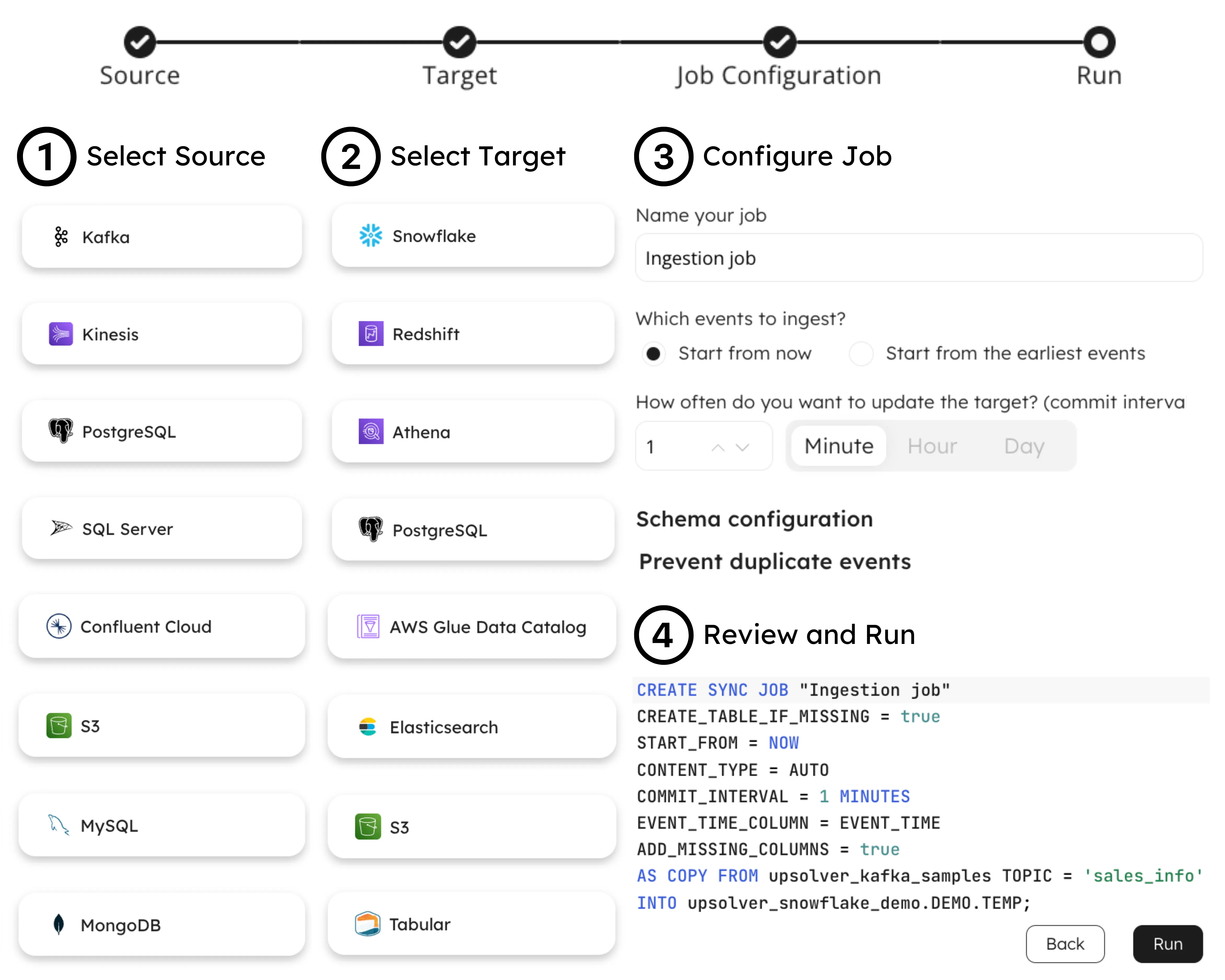 - Supports Kafka, Kinesis, S3, and SQL engines (Athena, Impala, etc.)